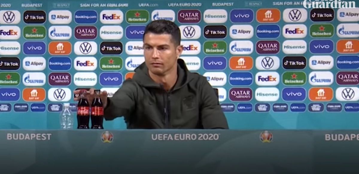 Vlral ronaldo tolak coca cola euro 2020 press conferences.
